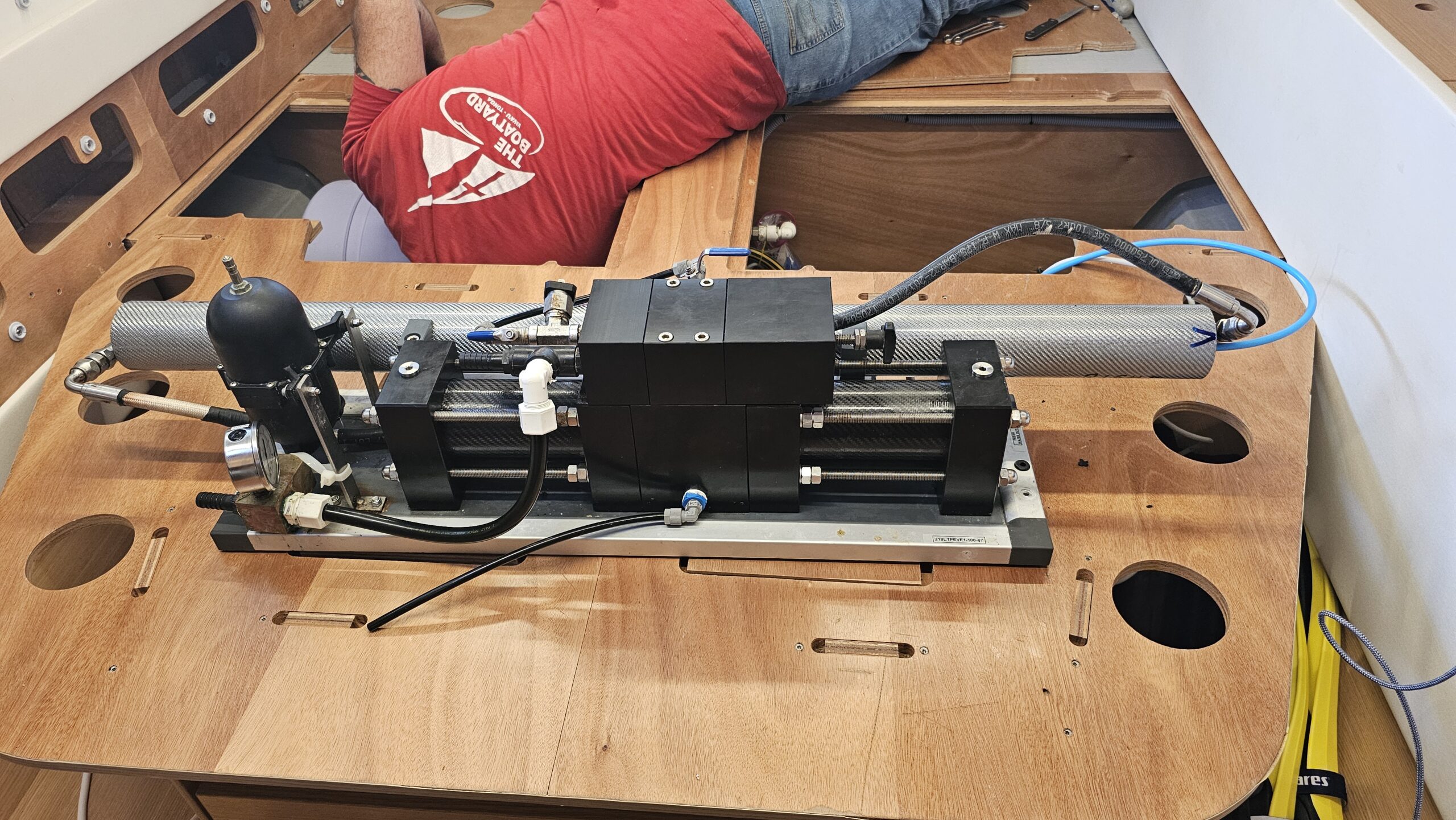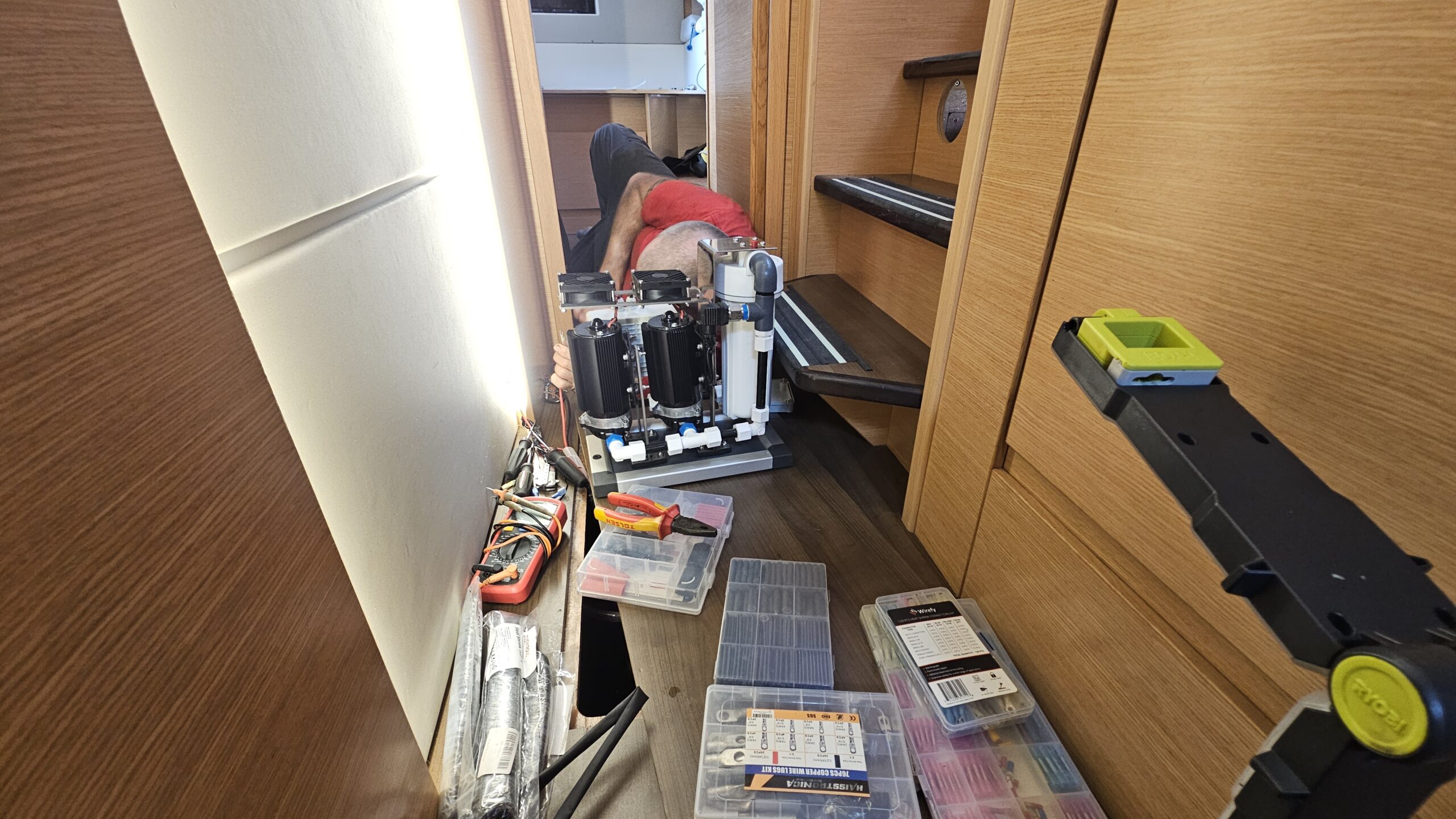 Even though we had a rigging inspection only 12 months ago, we thought it should be checked again. And “of course” – like last year – the rigger found some serious issues with the “well proven gold standard 1×19 stainless steel cable” shrouds. Tired of the “gold standard” failing again and again, we now decided to go with the latest technology. Non-braided, “just” coiled, pre stretched SK99 Dyneema. 10 times stronger than steel (or 10 times lighter than steel). This has been engineered by crazy French racing sailors (Vendee-Globe, Route du Rhum, Transat 650, etc.) and ingenious sailing inventors in Tahiti. Now we are several thousand Euros and 40 thousand grams lighter – at 150% breaking load compared to “gold standard” steel, plus no more metal fatigue.