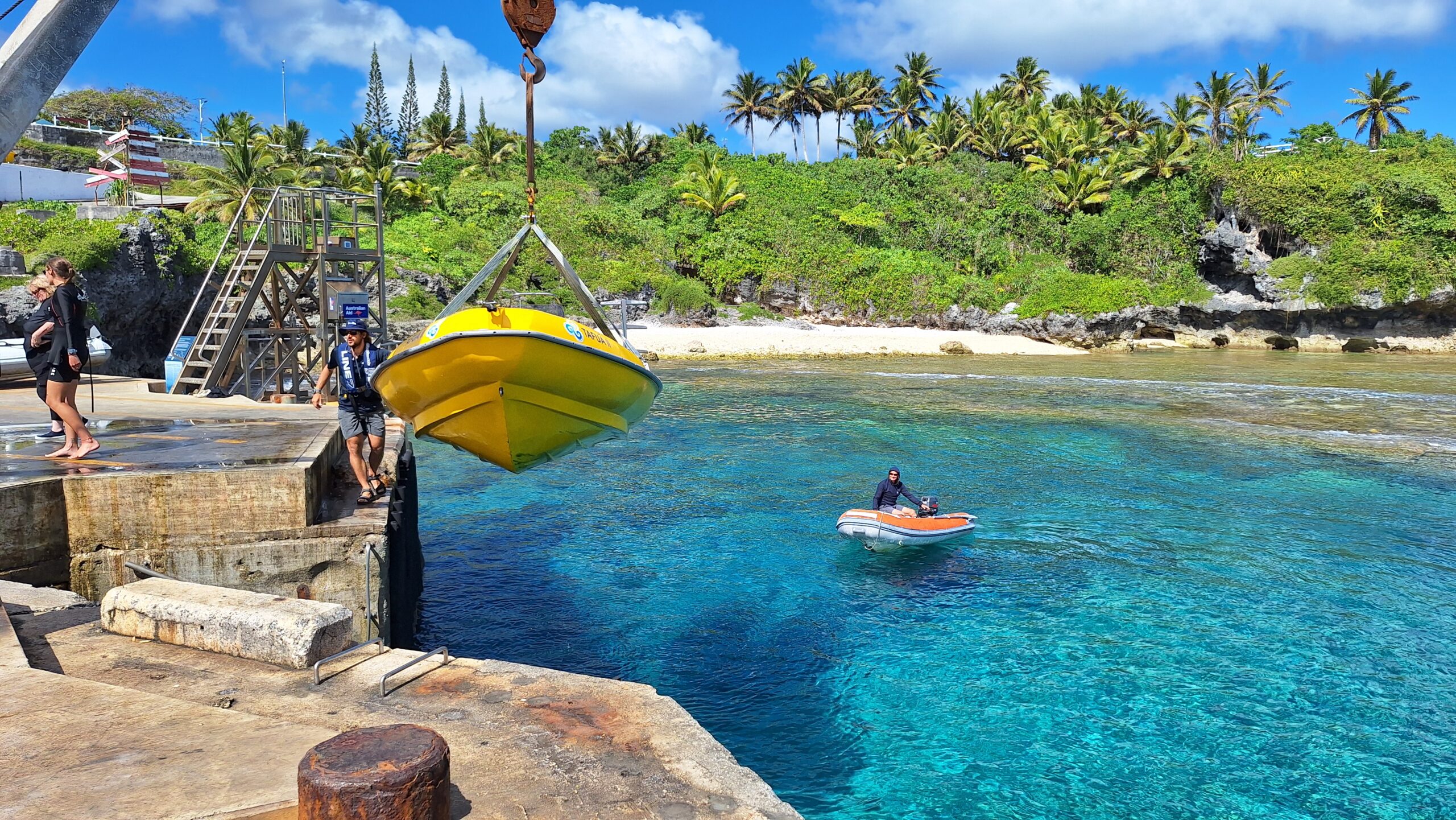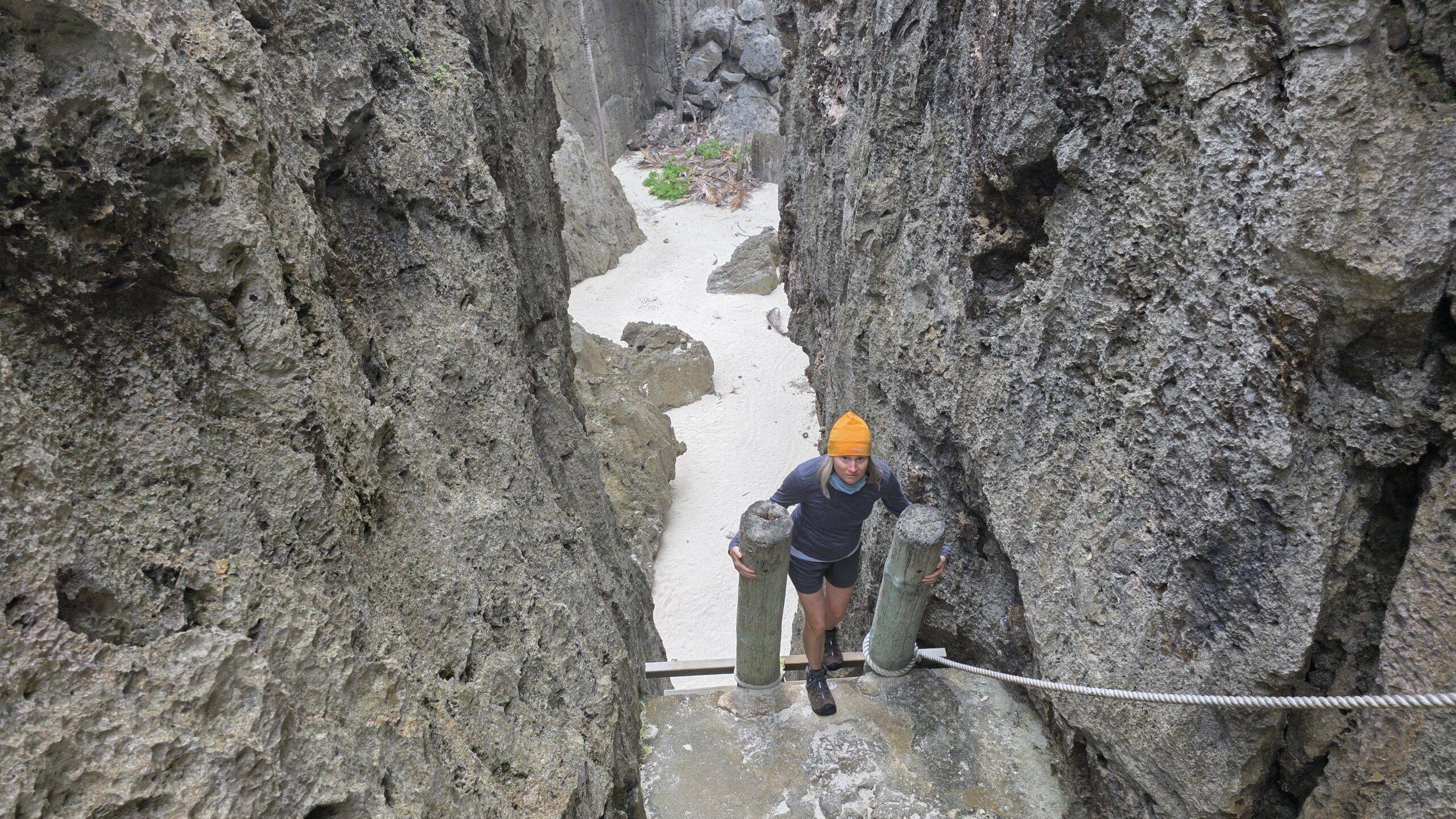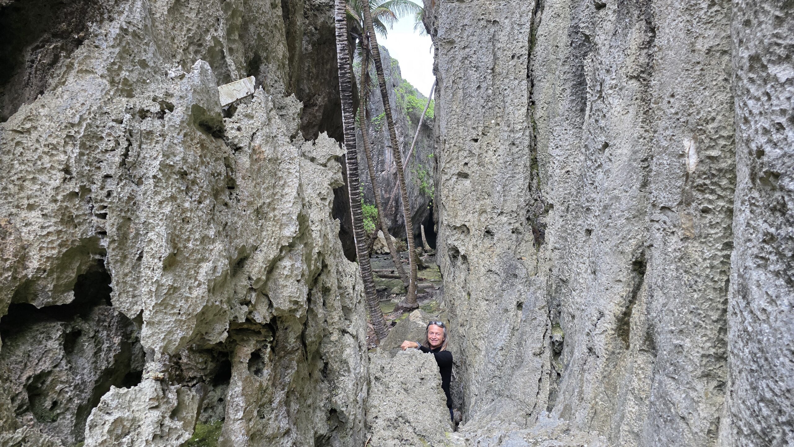 Niue is a raised coral atoll – basically one big chunk of uplifted limestone. There are no rivers that could transport mud into the ocean. One of the reasons why Niue has one of the clearest waters in the world. We could easily see the bottom from Barbarella when moored in 40 meters of water. The rain on the limestone creates some amazing chasms, caves and crevices. The downside of the rock of Polynesia is that there is no anchoring – just moorings. The only way to get onshore is using a dinghy crane. And if the wind is from the wrong direction it can be from very uncomfortable to outright dangerous. That is when you have to sail to the other side of Niue and tack up and down for 12-48 hours. Or, as we did, you sail to Beveridge reef. But as long as the conditions are good, Niue is just awesome