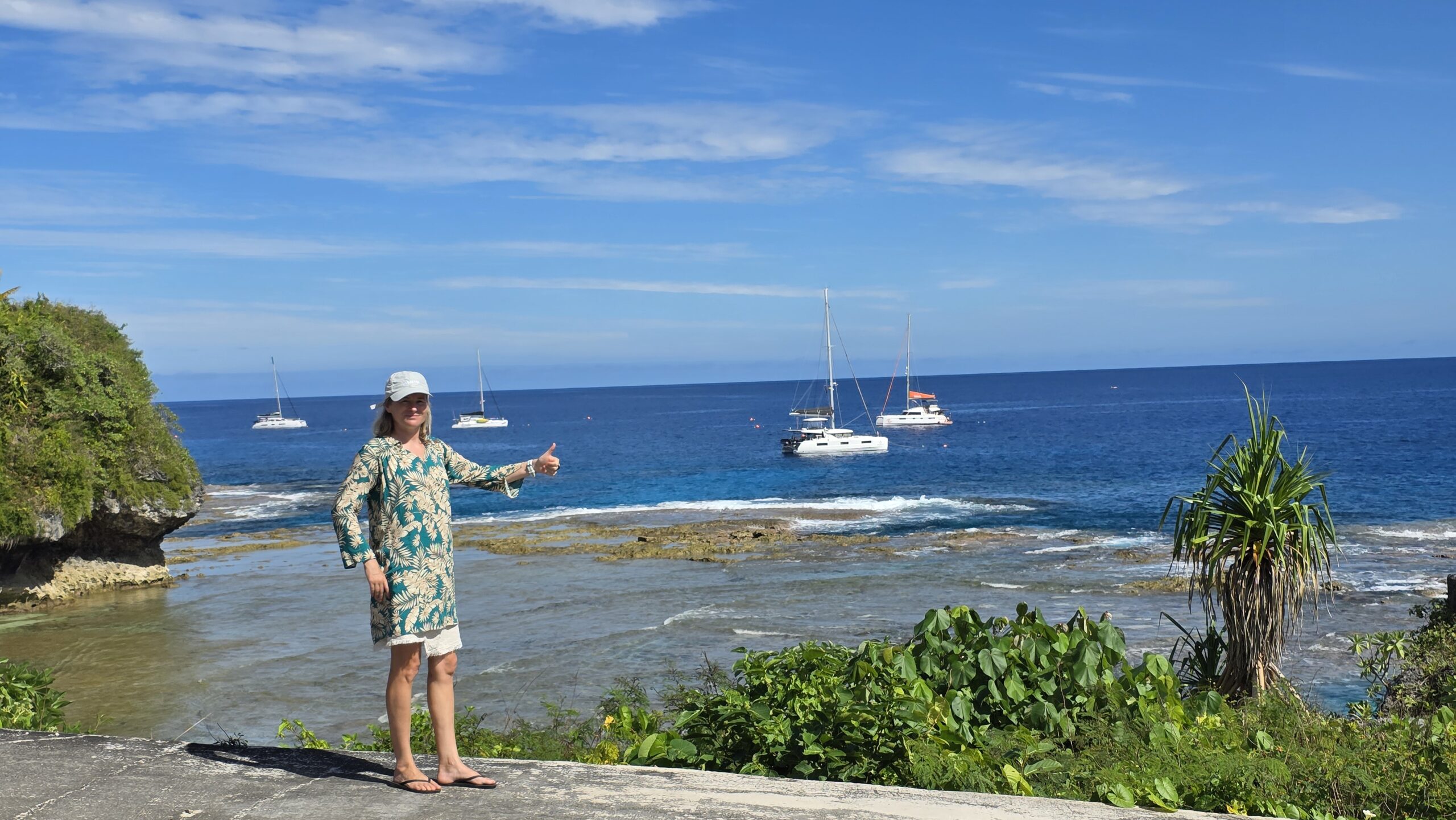 We saw a small weather window to sail east to Niue. A place, we wanted to go for some time. So off we went on Nora’s name day, sailing east. Tonga and Niue are in the “same” time zone. However, they each are on different sides of the date line. So we sailed from Tonga, where the day begins to Niue, where the day ends while Nora had a 48 hours name day. In Niue, our first stop was at the Niue Yacht Club, The “Biggest Little Yacht Club in the World – where no one owns a yacht or know how to sail“. Why no yachts? Well, Niue is just “a rock” in the Pacific. No harbor, no sheltered bay. Not even a dinghy can get on shore – unless you use a crane