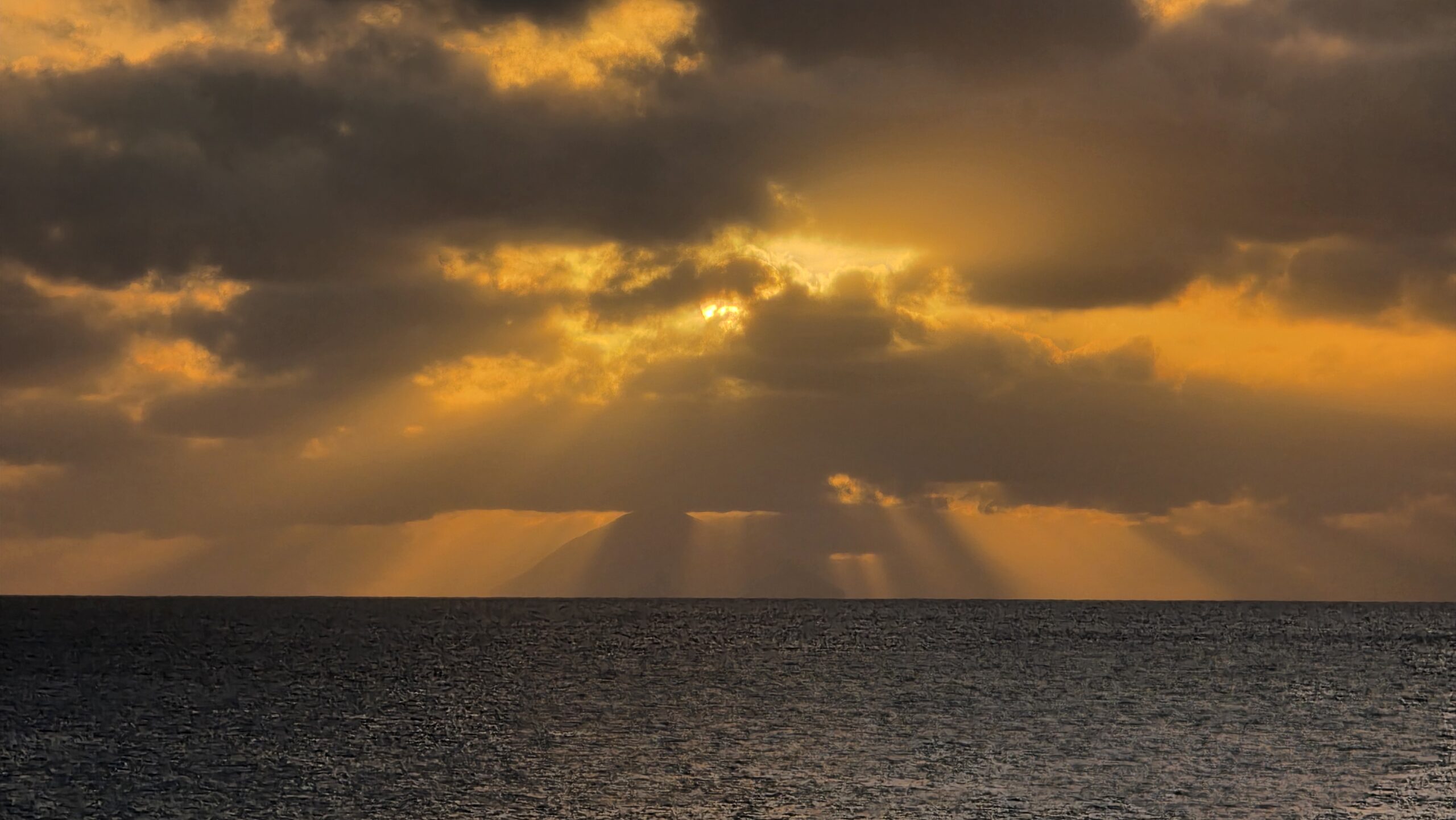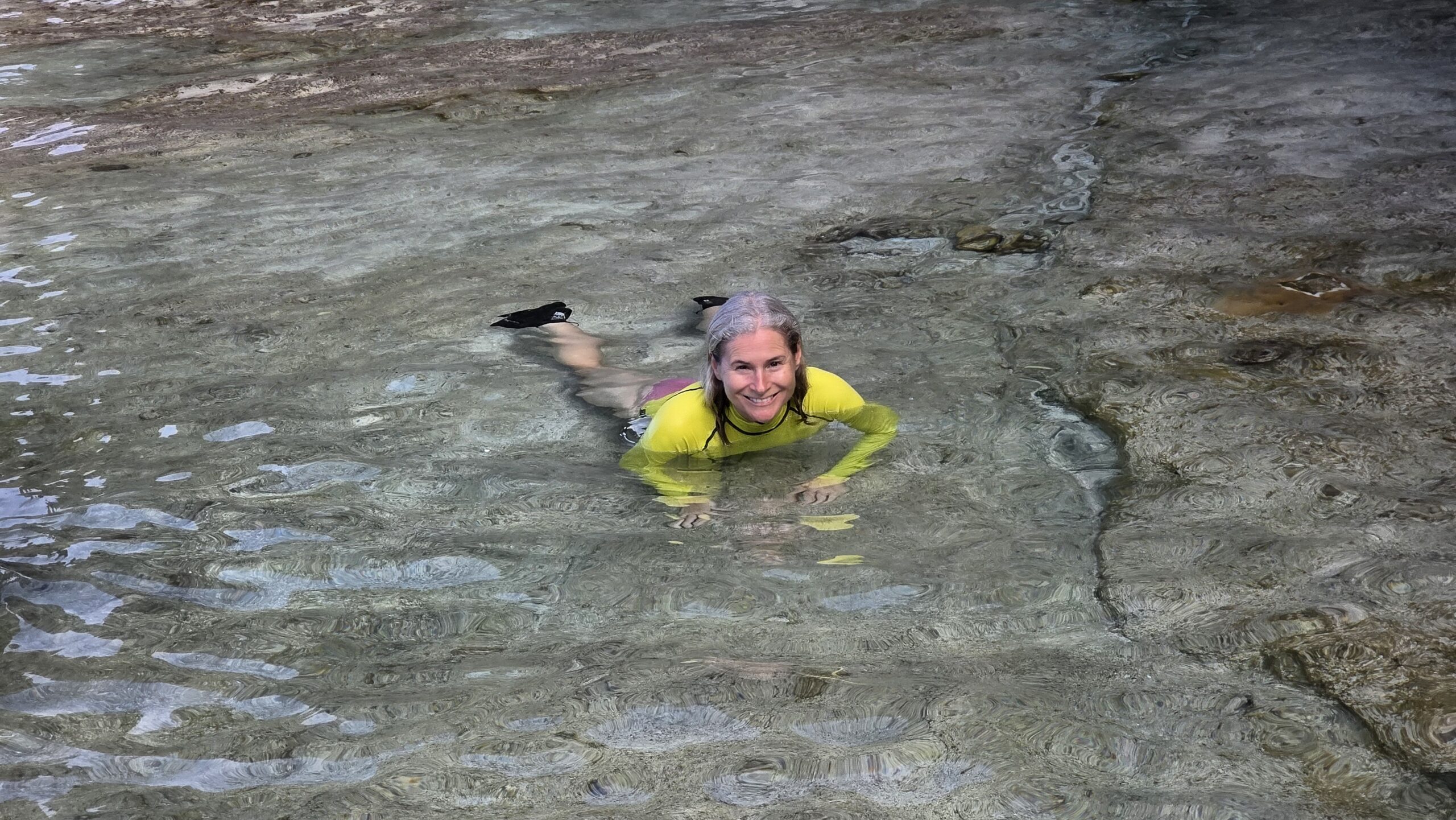 The waters are amazingly clear in Niue. We “anchor”, i.e. are moored at 38 meters’ depth. It is easy to see the bottom from Barbarella. And, all fish in between. Including the local Niue dolphin welcome committee